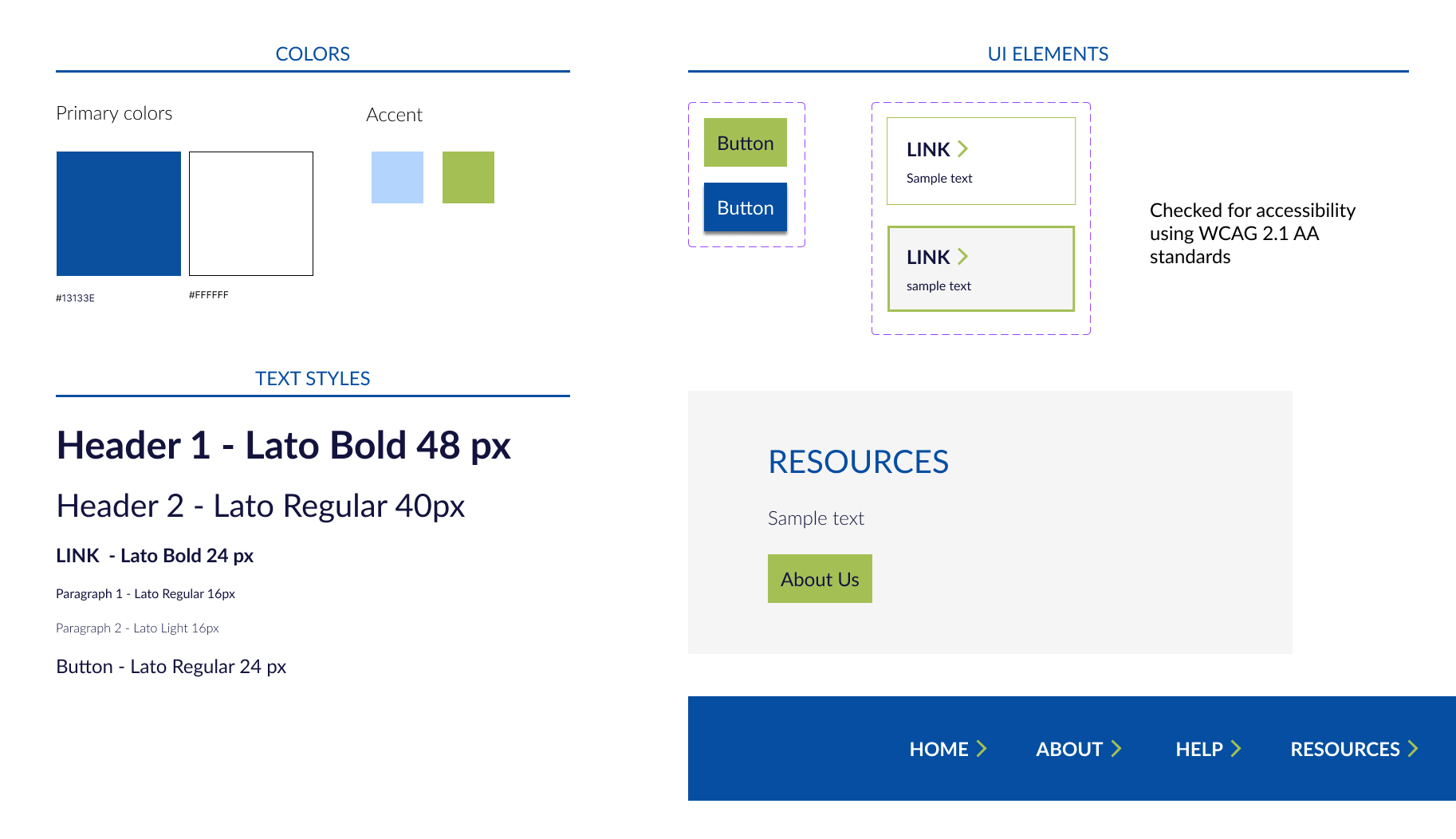 Using the official Rice colors as a guide, and the main rice.edu website, I created a style guide in Figma using the approved Rice University colors and Text styles, while ensuring UI elements that were accessible.