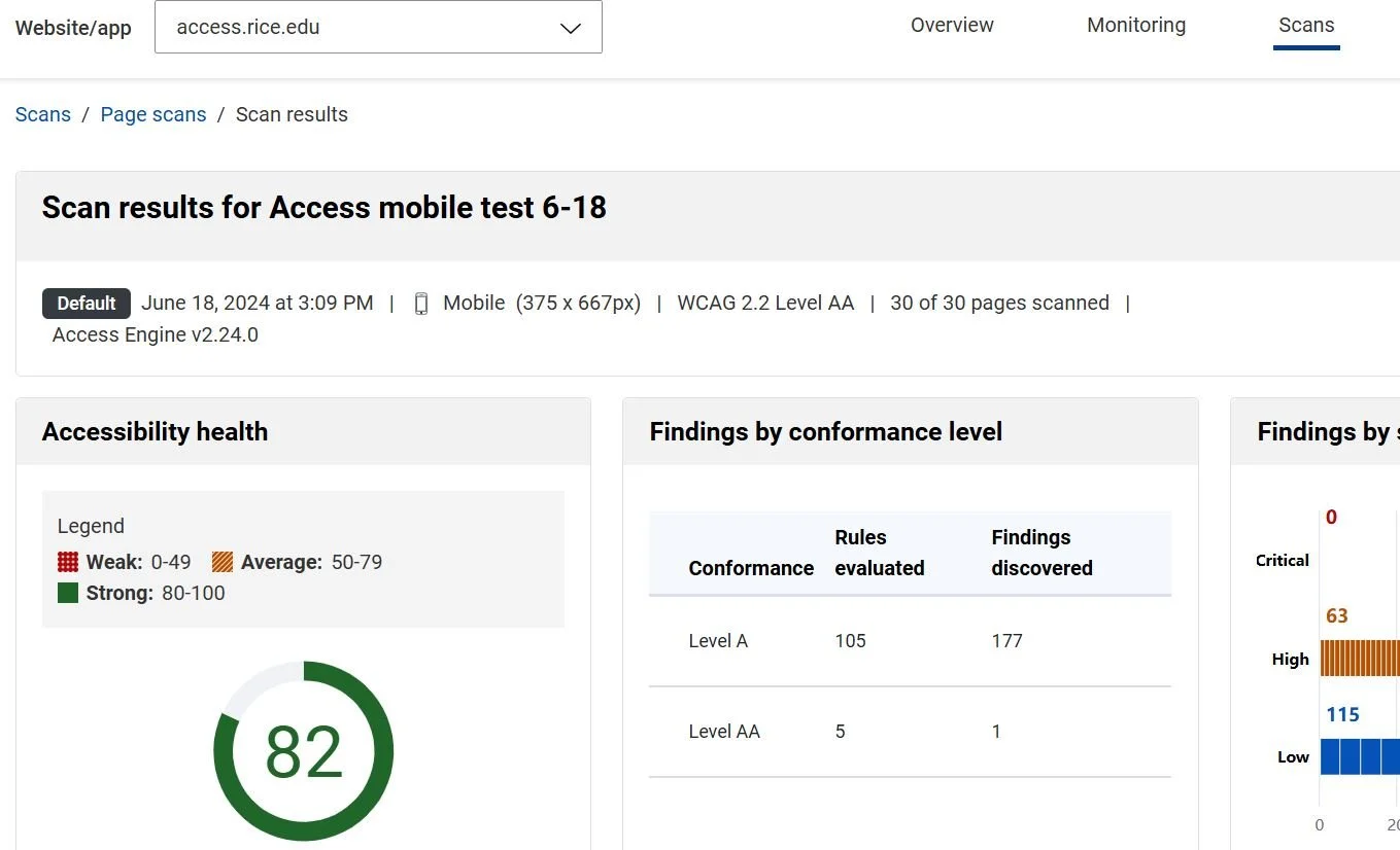 Below is a audit of the access.rice.edu site, after identifying and resolving accessility issues.