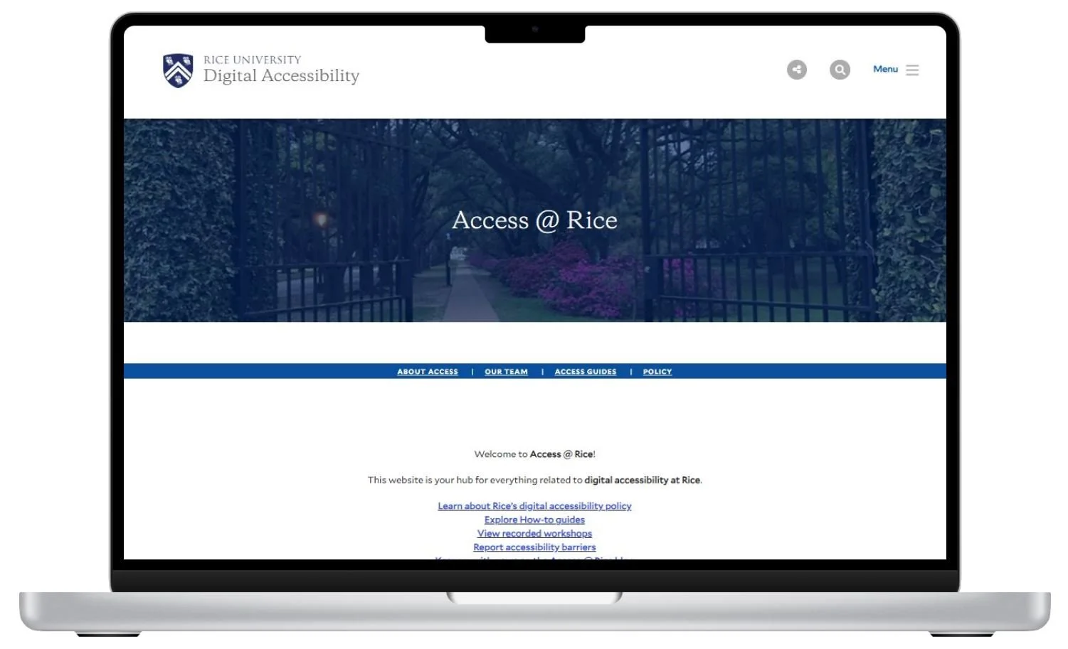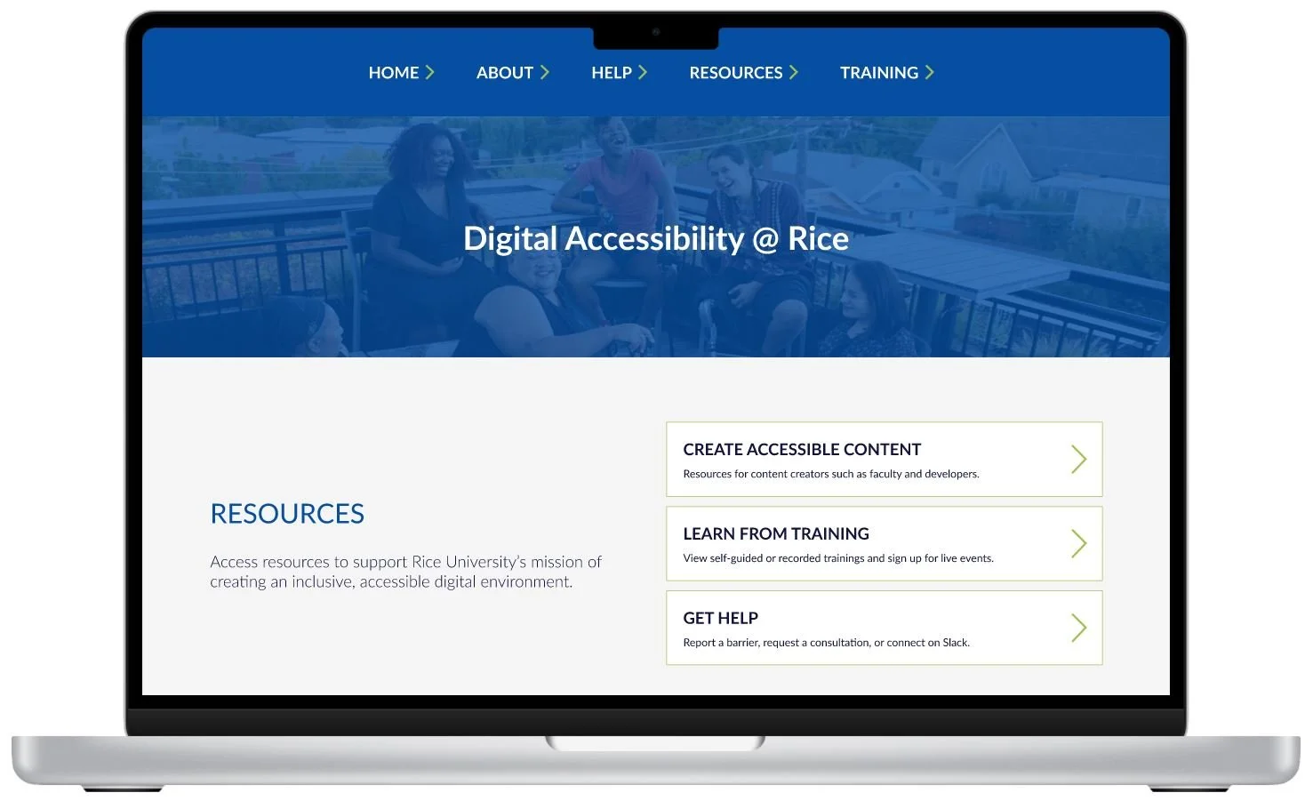 This redesign for the department of Digital Accessibility supports Rice University's mission to make all digital content accessible, offering the campus essential training and resources to create more inclusive online experiences.