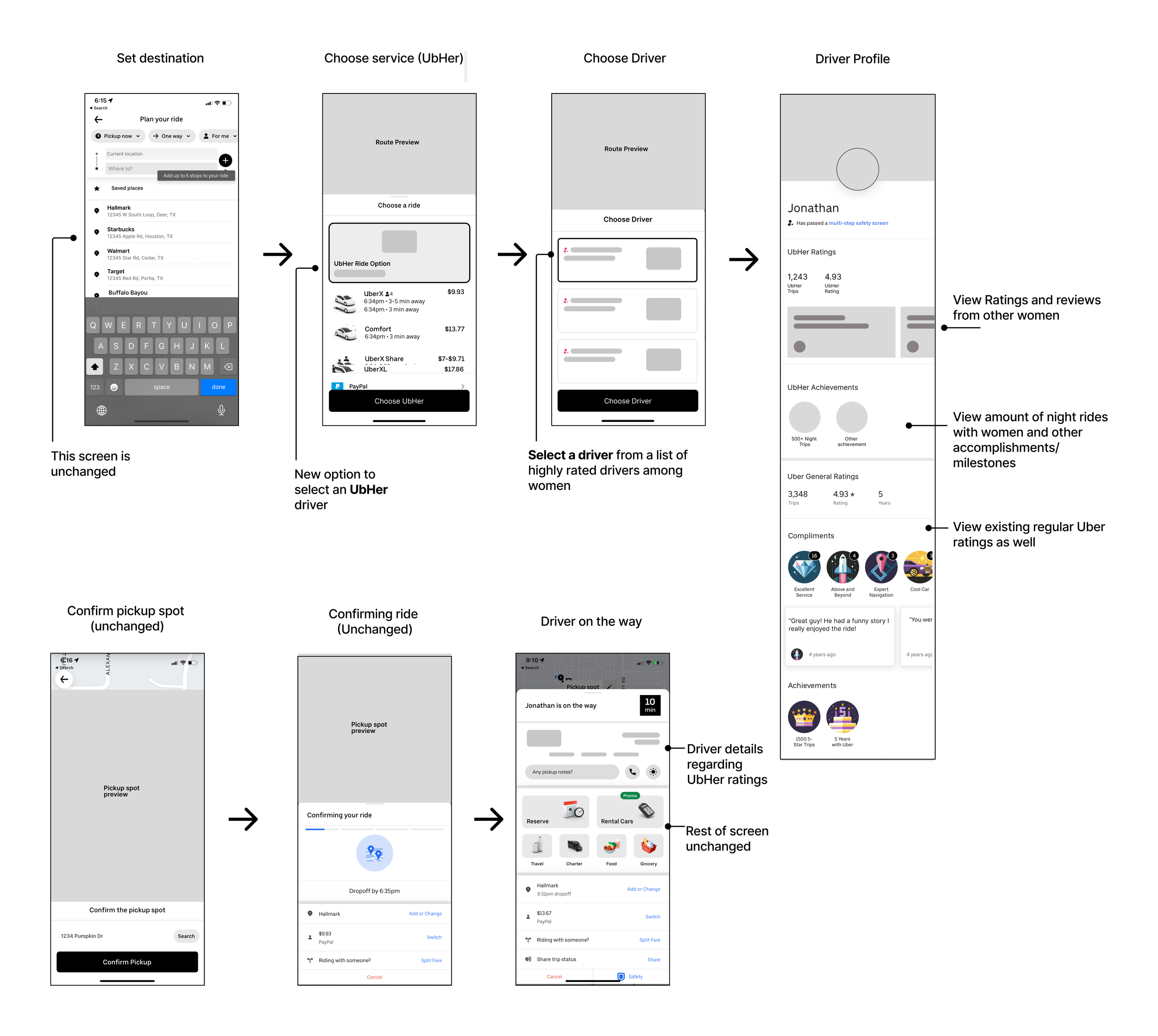 I sketched out how a feature which would allow other women to choose and pick their driver might look like.